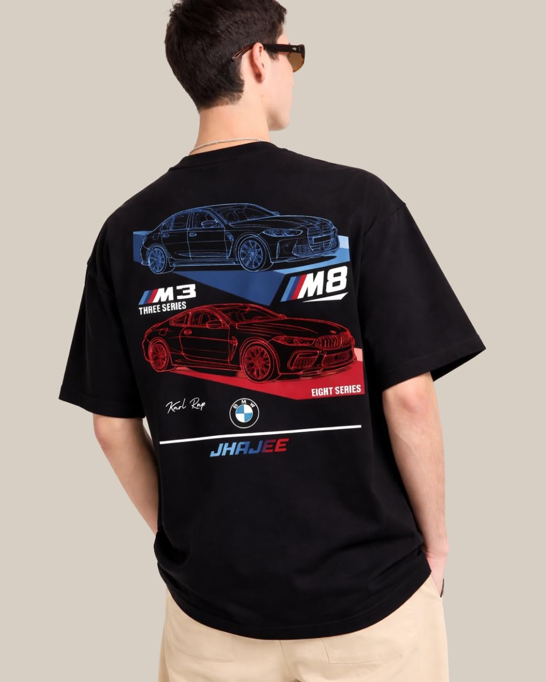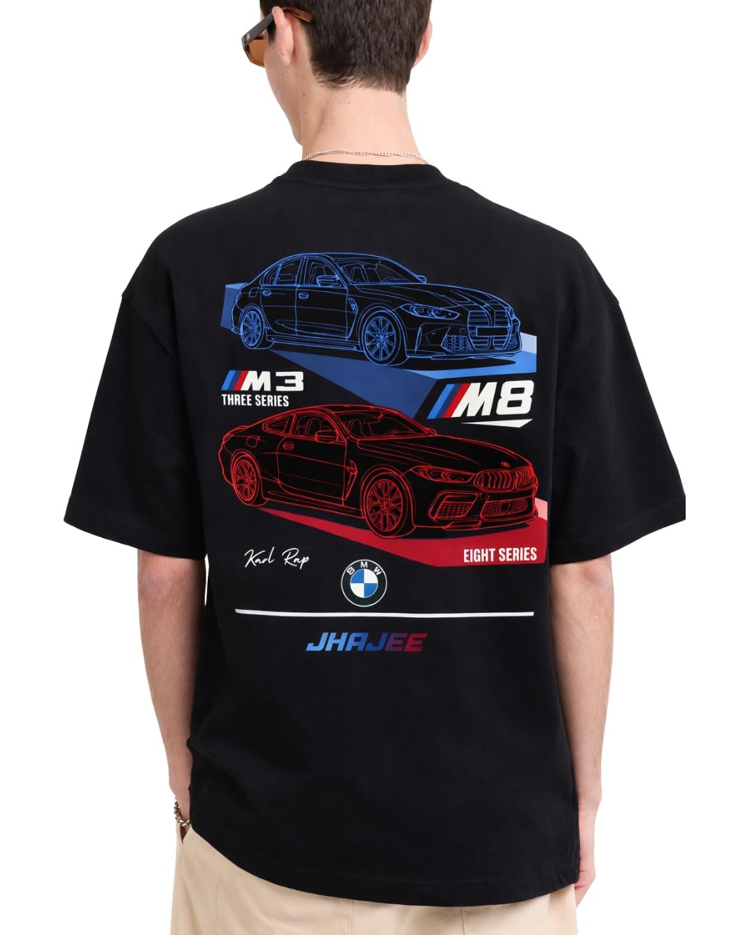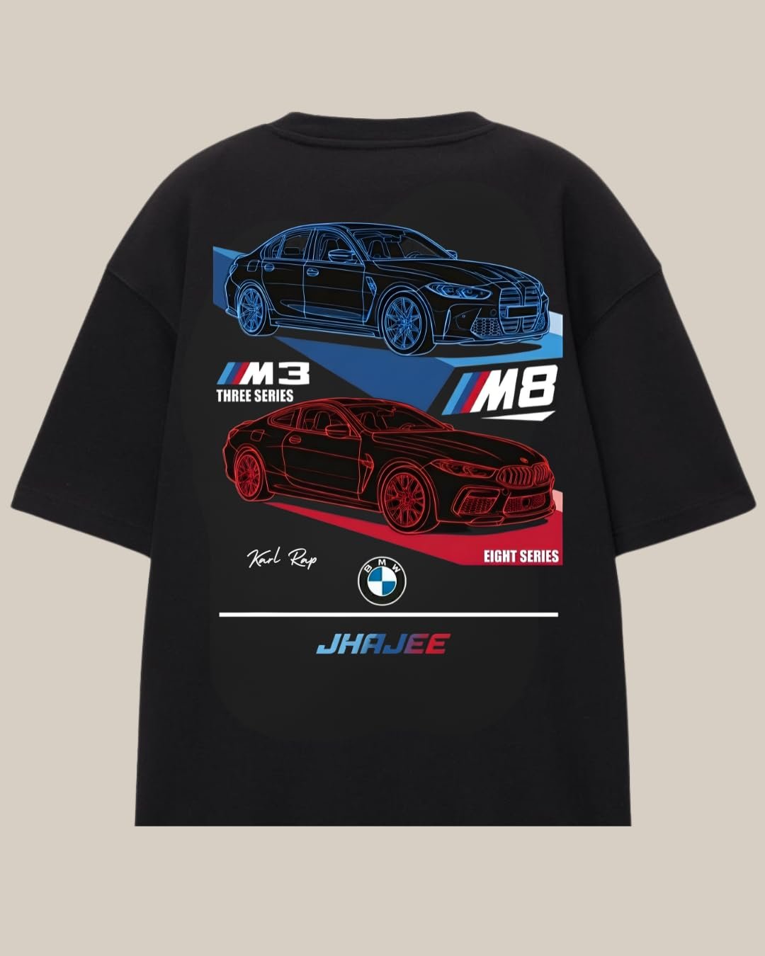 JHAJEE Clothing Unisex Oversized Cotton French Terry T-Shirt | BM Inspired M3 & M8 Sports Car Graphic Print | Half Sleeve Streetwear Tee for Men & Women