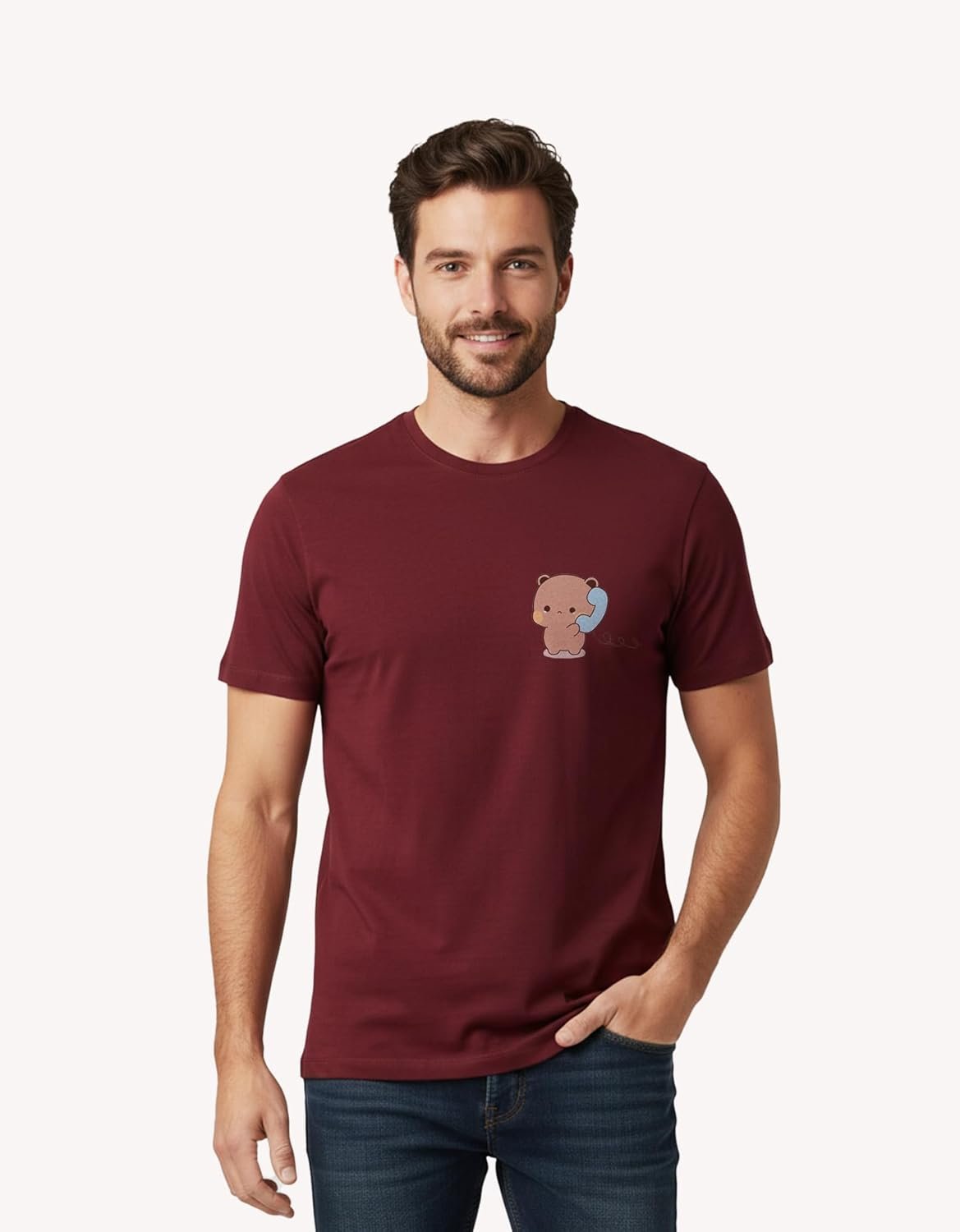 Review: T-shirts fabric is very soft and colour is also cherry red. Quality is worth the price.