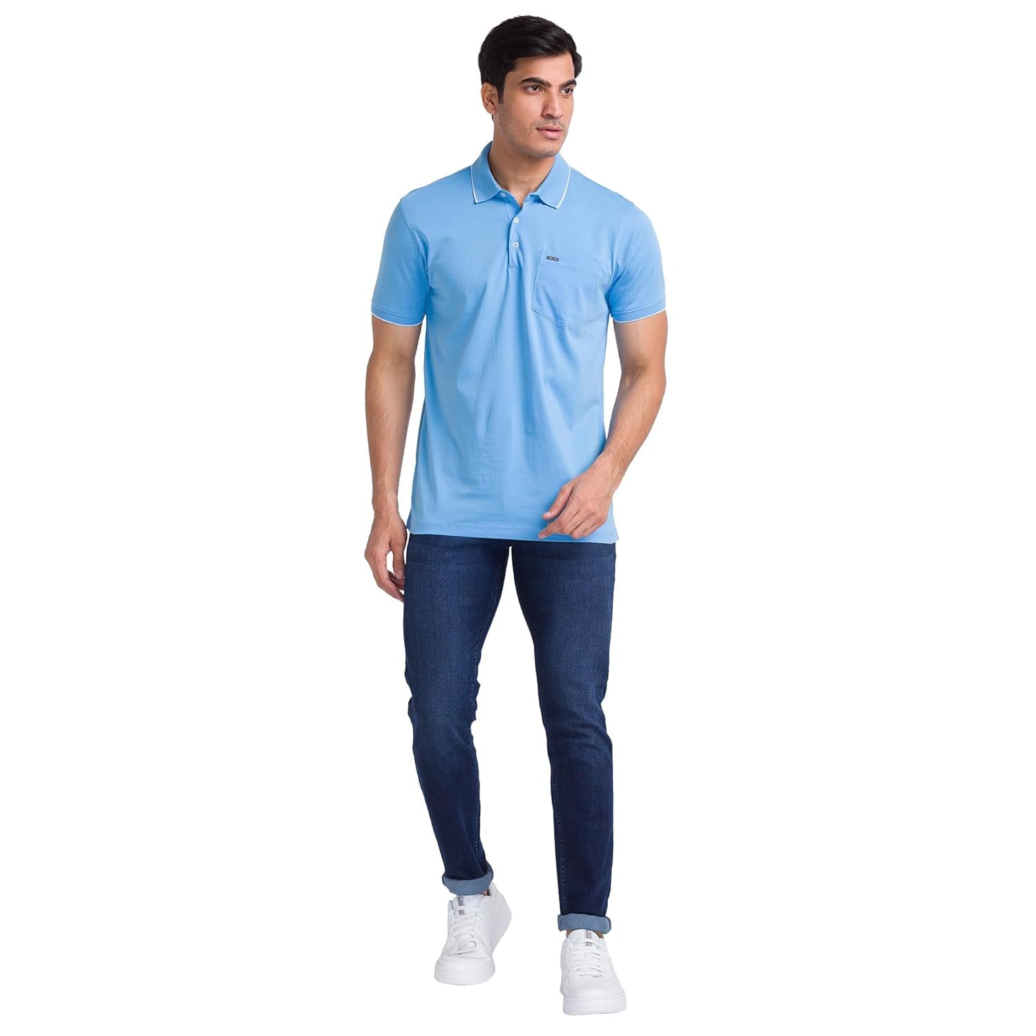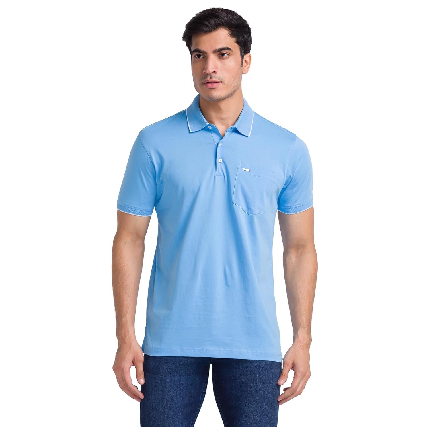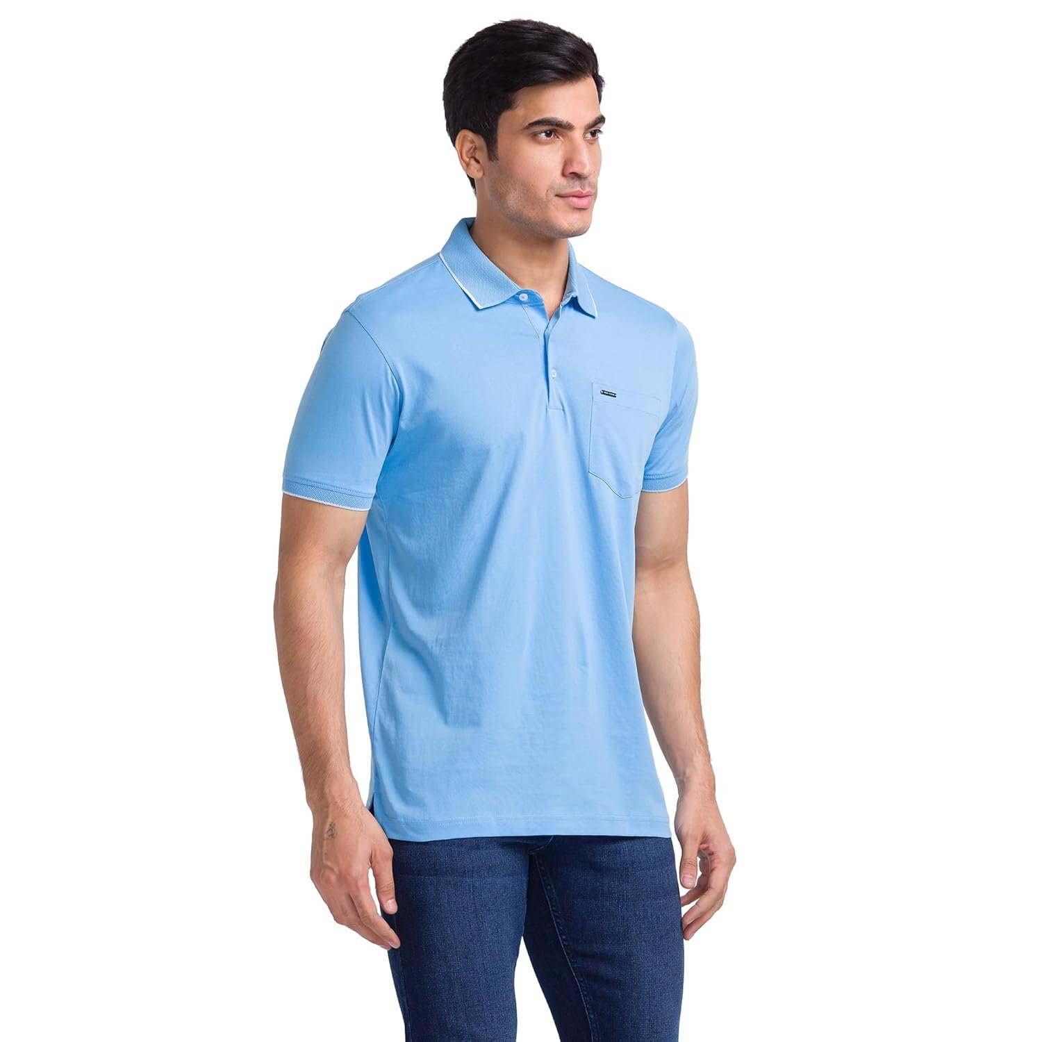 Park Avenue Men Cotton Slim Fit Solid Pattern Polo Neck Casual T-Shirt