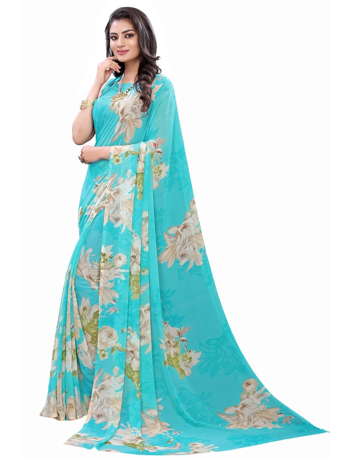 SIRIL Women’s Georgette Printed Saree With Blouse Piece