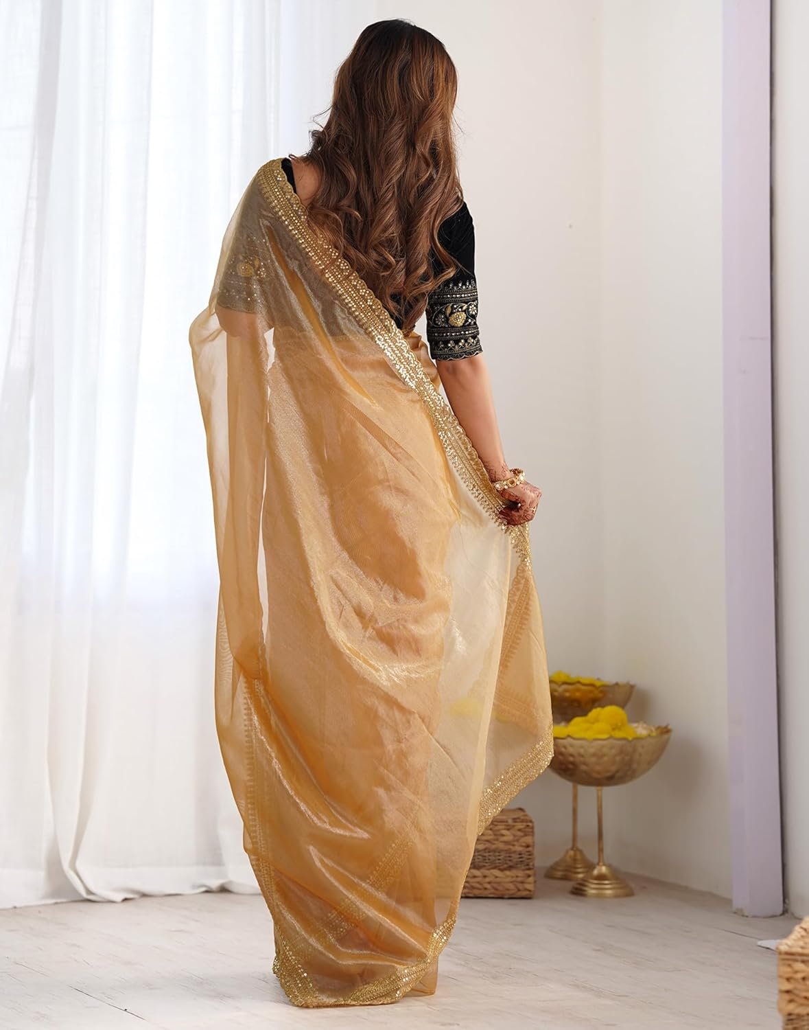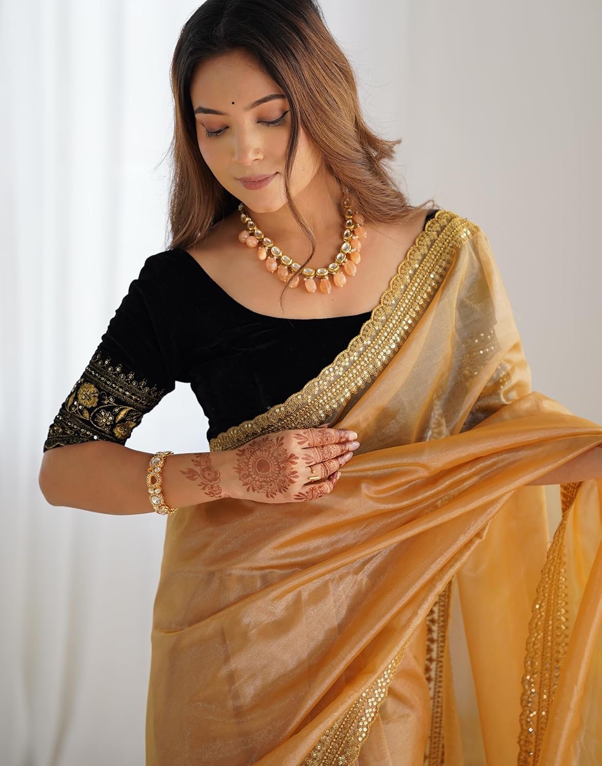 SIRIL Women’s Shimmer Net Sequence Embroidery Lace Saree for With Unstitched Blouse Piece