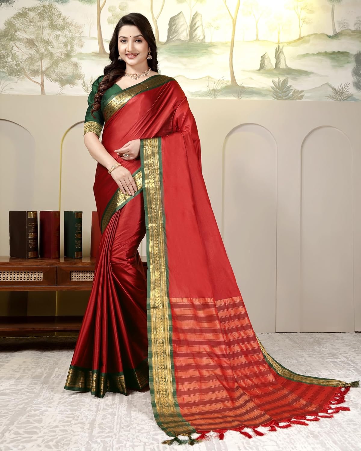 Traditional Silk Saree with Gold Border Contrast Zari Weave Pattern Brand: ASIN: B0FG79Q3SZ Updated: Feb 19, 2026 06:03:56 UTC ₹2,999 - ₹699.00 Buy on Amazon Rating 5 / 5 Category Clothing & Accessories > Women > Ethnic Wear > Sarees...